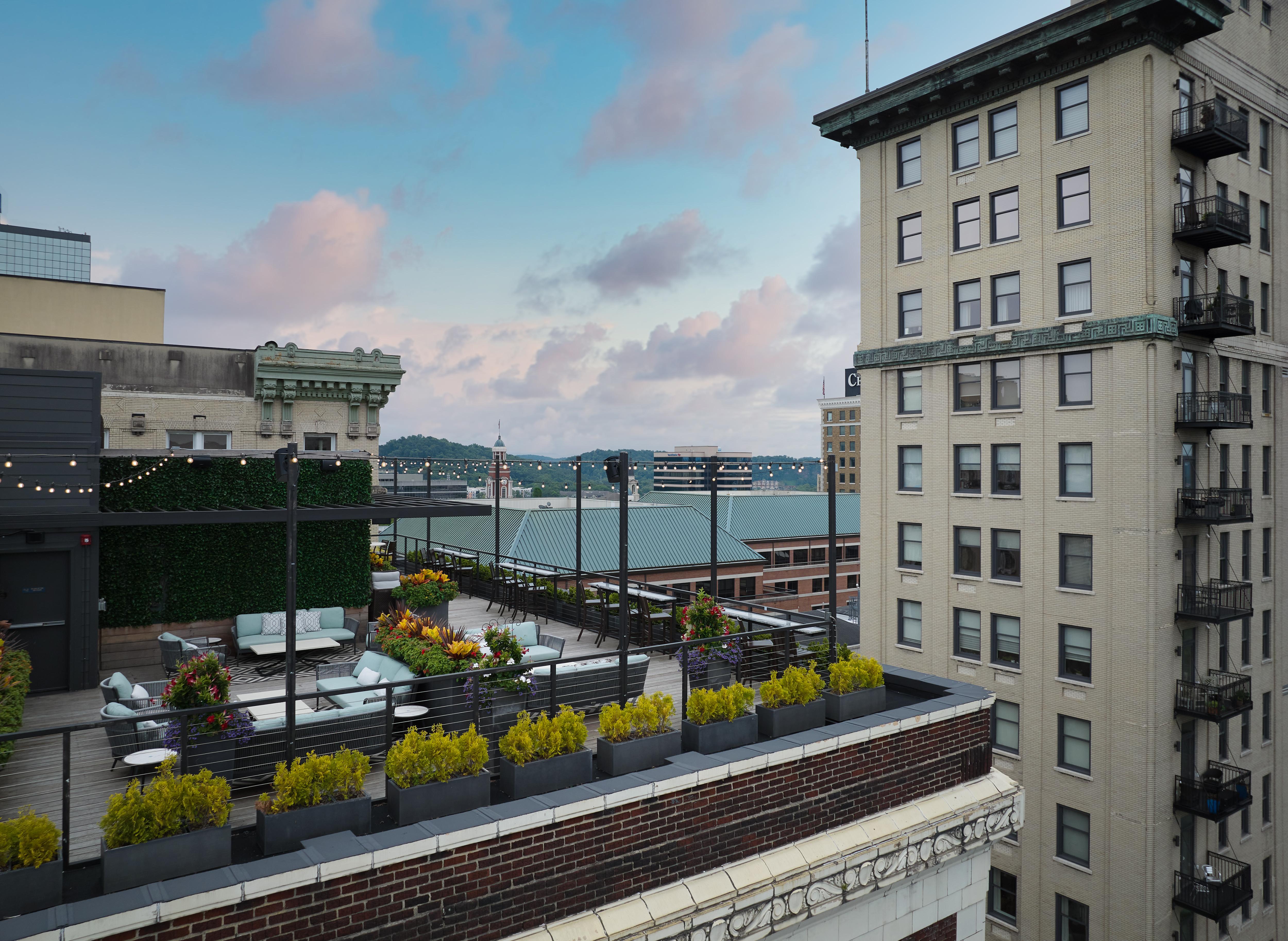 About|Explore Knoxville’s bustling downtown from this historic hotel. Start the day with a beverage from our onsite Starbucks and breakfast options in our Gallery Kitchen. Maintain your routine on-the-go with the 24/7 StayFit Gym - complete with a yoga room. Stay productive with free Wi-Fi and keep your energy up with 24/7 on-site dining. Elevate your Knoxville experience with a visit to Five Thirty Lounge, located on the hotel’s rooftop. The space offers spectacular views of downtown Knoxville and the Smoky Mountains from 10 stories above.