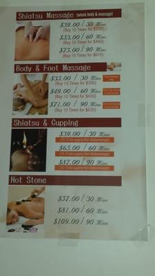 We offer full body shiatsu, deep tissue, and swedish massage....