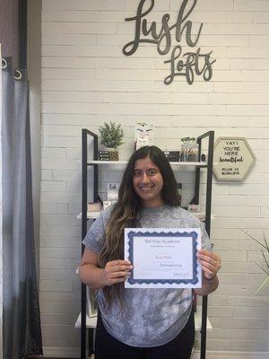 Licensed Esthetician & Cosmetologist for 10 years. I was 2015 Esthetician of the year for franchise spa, 2017 employee of the quarter & clinic champion. I am Dedicated to solving my clients skin care concerns and treating them with natural & effective devices and products, certified clinician with PCA