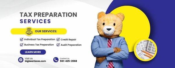 Big Bear Tax Services has experts offering professional tax services to individuals and businesses nationwide with over 25 years of experience.Over that time, we have grown from a single-person firm to one of the best and most trusted tax firms, processing thousands of tax returns annually. We serve clients with a professional approach that makes us trusted in Tax return preparation, Small business tax and business filings, payroll, and employee management. The Bear does not shy away from hyper-sensitive matters like IRS audit help, Credit and Debt clean up, or even Life Insurance.There is a reason our clients trust the BEAR as one of Floridas most trusted tax firms with 5-star reviews on Google Yelp, and Thumbtack.Our tax consultant team has a track record of helping individuals and businesses of all sizes with day-to-day tax issues.mc elite services llc