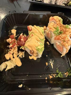 Service was really friendly. Food was delicious! Some of the best fry bread I've had! Super fluffy, crisp and yummy. Could've eaten it plain it was so good. Got the flight so I could try a little...