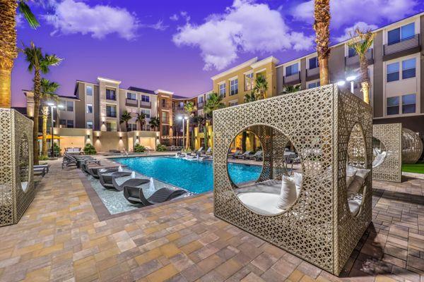 Located close to professional office space, shopping, dining options, and schools, the Aspire at Echelon Apartments in Las Vegas is the perfect location for luxurious apartment living. Modern one & two-bedroom luxury apartments for rent are now available in 89149. With exclusive amenities, sleek design features, hard surface floors, and contemporary-style kitchens. Fitness center, billiard room, resort-style pool & spa, night-lit covered parking, and impressive architectural designs