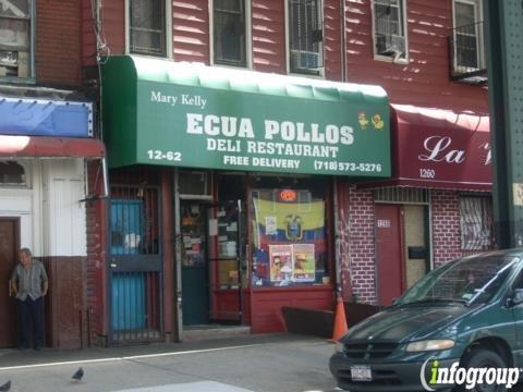 Ecua Pollos, located on Myrtle Ave in Brooklyn, NY, is a delicatessen specializing in fresh-meat and cold-cut sandwiches, available in both hot and cold varieties.