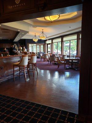 Beautiful golf course with very few people using it. Awesome deck and bar with friendly staff. Great wings and icy Ankersteam on tap.