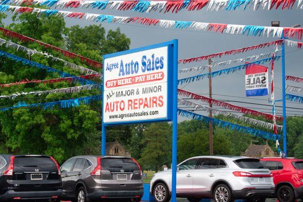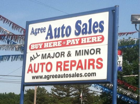 Buy here, pay here. Here at Agree Auto Sales, we have been proudly serving the Trumball County for 24 years. We specialize in used vehichle sales.Here are the brands we support:* Chevrolet* Ford* GM* Chrystler* Dodge* Cars* Trucks* SUV'sWe are a family owned and operated business specializing in the buy here, pay here options. We also do all full major or minor service for all of our customers needs. We have updated inventory every 2 weeks with our newest vehicles from 2006. We do have a warranty program extended 1 month or 1000 miles, whichever comes first. Call us today.