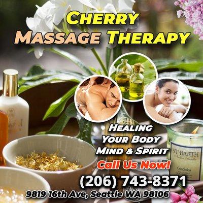 Cherry Massage Therapy, is an asian massage spa designed to help you reduce stress, relieve build up chronic pain, and increase the overall quality of your life! We specialize in multiple affordable, customized treatments to meet the needs of a wide variety of clients in a peaceful setting! We are proud to be providing Authentic Asian Massage therapy services in our beloved community of Seattle, WA! Our Professional Asian Staff are perfect To help you relax after a long stressful day of work! Here at Cherry Massage Therapy we are Providing a Modern Asian Atmosphere that will make your every visit highly satisfying and give you a new rejuvenated self! Come in and visit today, you can call us now to Create your appointment, or feel free to walk in!