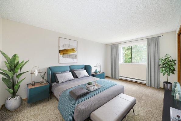Hampton Court Apartments in Everett, WA, offers a refined living experience with two-bedroom apartments featuring cozy wood-burning fireplaces and in-unit laundry. Nestled in a central location, residents enjoy easy access to work, shopping, dining, and recreational activities, along with beautifully landscaped grounds and community amenities like an on-site basketball court.