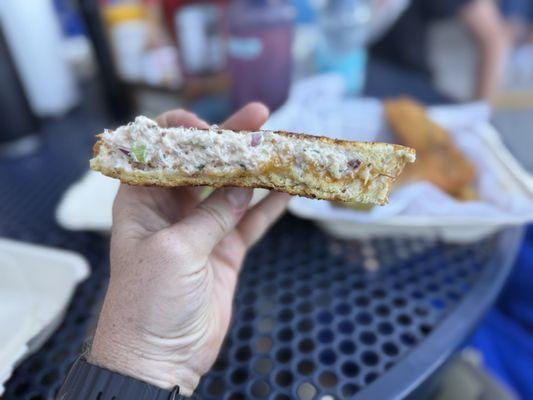 my wife had crab sandwich, shoulda been called just a sandwich. where was the crab? I had a Cod sand...